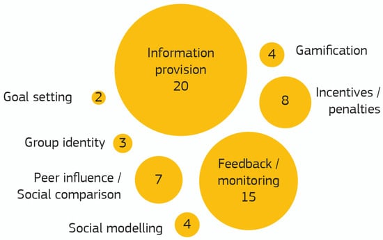 In the following sections, the behavior change strategies used in the projects, as presented in Figure 4, are described and discussed in further detail.