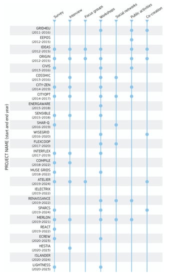 The paper is organized as follows: in Section 2 we introduce an overview of engagement strategies used in the energy field; in Section 3, we present the methodological approach; in Section 4, we present the results of the analysis highlighting the findings in terms of behavior change and participatory strategies. We also refer to some of the projects to give examples of interesting emerging practices. Finally, in Section 4, we discuss our findings and provide recommendations.