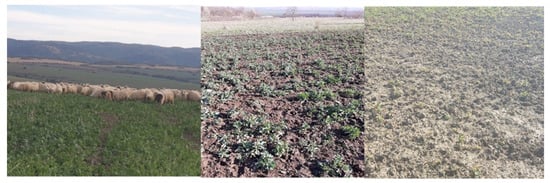 Overall images of rapeseed crops affected by excessive pasturing.