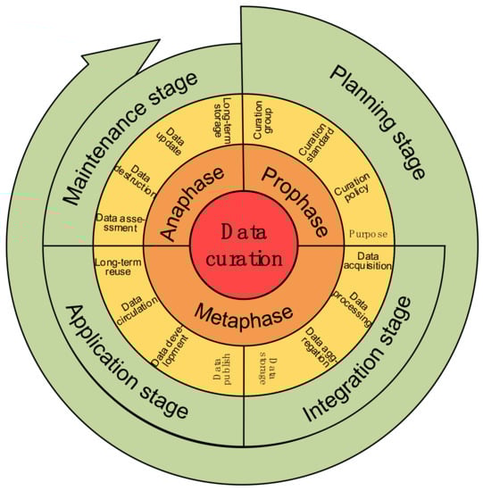 Since the proposal of data curation, several institutions have proposed corresponding conceptual models based on the definition and core concept of data curation. These models combine the characteristics of various fields, as shown in Table 4 [,,,,,,].