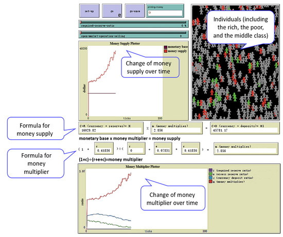 To address the gap, we conducted this study with university students who participated in simulation-assisted learning about the economy as a complex system. In our study, a computer-based simulation system was implemented to support student learning of money supply as a complex economic system, and monetary policy as an intervention in the system. Money supply refers to the supply of money in an economy, and monetary policy refers to the policy for controlling the money supply. This learning subject was selected for two reasons: (1) the supply of money in an economy is a complex system involving multiple agents interacting in a complex way; and (2) understanding money supply and monetary policy is essential to economics education [35,36,37,38].