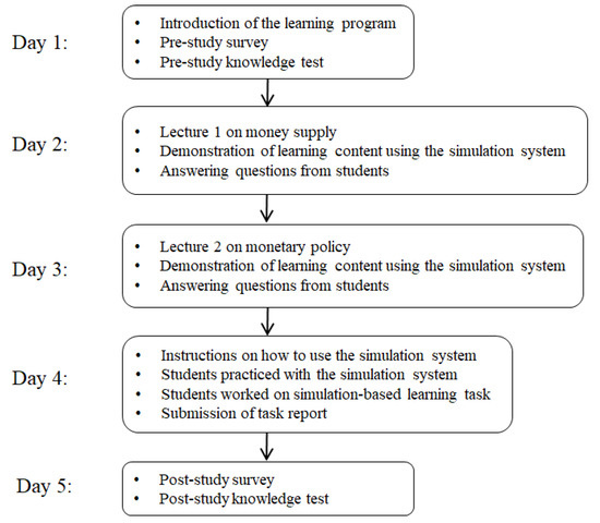 On Day 5, students completed the post-study survey and knowledge test, which took about 60 min. The post-study survey was administered to collect the students’ perceptions about cognitive load, affective experiences (motivation and emotions), and comments on the learning program. The post-study knowledge test assessed the participants’ knowledge about money supply and monetary policy.
