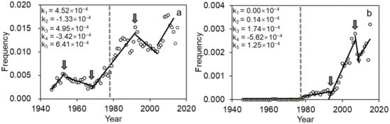 Chicago/Turabian StyleZhang, Danqing, Guowen Huang, Jiaen Zhang, Xiaoyu Hou, Tianyi Zhou, Xianyuan Chang, Ying Ge, and Jie Chang. 2022. "The Evolution of Sustainability Ideas in China from 1946 to 2015, Quantified by Culturomics" Sustainability 14, no. 10: 6038. https://doi.org/10.3390/su14106038
