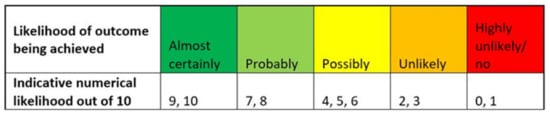 - The likelihood matrix was successful in helping the stakeholders to appreciate that assessments were uncertain, but it lacked transparency in what uncertainties were considered. Descriptions of some data and model uncertainty were included in the documentation of the modelling components, but it is not clear to what extent these and uncertainties from other sources [26,32] were taken into account in determining the likelihood of achieving first- and second-order outcomes in the matrices.