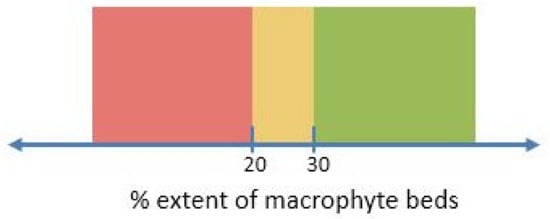 | There are healthy and extensive macrophyte beds (to 1960 extent) | 1 | % cover macrophyte beds | 1 |