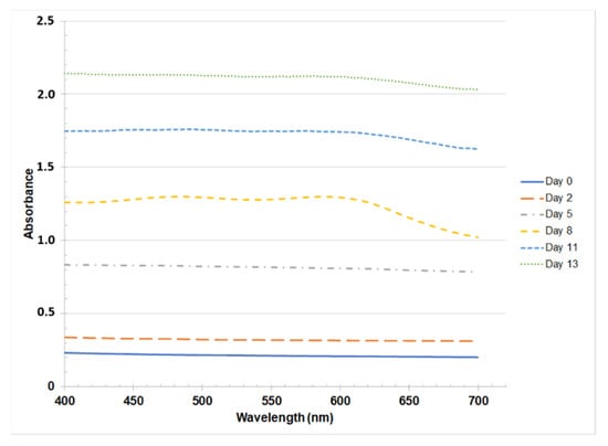 Monitoring of Spirulina sp. by optical density between 400 and 700 nm.