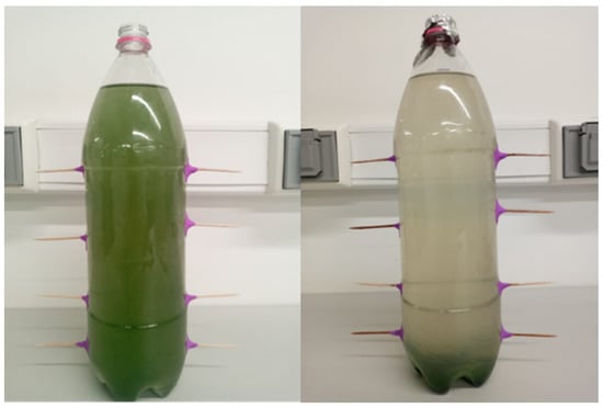 After the production of the Spirulina sp. biomass, it was separated by decantation as shown in Figure 4.