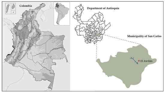 The municipality of San Carlos, Antioquia, and specifically the area of El Jordán was selected as a target location for the implementation of the results coming from this research, as shown in Figure 9.