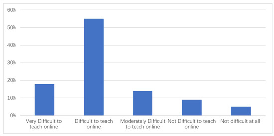 As to the perception of the teachers of e-learning during the COVID-19 pandemic, based on the results of the data shown in Table 1 and Figure 1, about half (55%) of the teacher-respondents perceived that it was difficult to teach online. Looking at the break-up of values, 18% said it was very difficult to teach online, while 14% of them said it was moderately difficult to teach online. Only 9% of them said it was not difficult to teach online, and only 5% of them affirmed that it was not difficult at all. The results of the study imply that teachers were ambivalent on the transition from face-to-face learning to online learning during COVID-19, as an indication of their sentiments expressed that it is difficult to teach online. This may be attributed to the reality that teachers seem hard to keep up with online instruction. In the series interview conducted with them to validate the finding of the study, Teacher 1 said “we find it difficult to teach through online because our standards are restricted. We are not able to see if our students are really leaning.” Teacher 3 expressed “At our age, online technology for us is hard to follow particularly in using the online technology learning platform.” In a like manner, Teacher 5 shared, “low internet connectivity makes us slow to process learning.” From the above and other responses duly transcribed from the recorded interviews, it is apparent that teachers faced many technological and infrastructural challenges, such as slow internet, frequent breaks in connection and a lack of backend support. The other challenge they faced to some extent was that of students losing interest in the classes when they find teachers struggling with the tech.