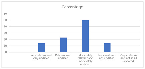As to the relevance of the skills of both teachers and students in online learning during special circumstances, such as the COVID-19 pandemic, Table 5 and Figure 5 show that a majority of the teachers opined that their skills were only moderately relevant and moderately updated, as shown from the 50% responses; that as many as 23% of them reported that they were relevant and updated; only 14% of the respondents believed that their skills were both very relevant and very updated and an equal number (14%) reported they were irrelevant and not updated. This result shows that teachers had not yet attained the level of technological competence expected of them, which needs serious attention from the government and curriculum planners, who may do well to take steps for in-service skill-upgradation.