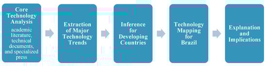 Our research draws on the academic literature on industrial evolution, product innovation, technology transition, and dominant designs. To investigate the Brazilian light vehicle electrification case, we relied on secondary data on energy policy, powertrain technologies, alternative fuels, vehicle electrification, electric cars, biofuels, clean energy, materials reuse, recycling, and value chains, from government agencies, research institutes, and think tanks, technical reports, and articles from consulting firms and specialized press. From the analysis of those documents, we extracted the major trends in the core green technologies relevant to the emergence of electric cars—batteries, electric motors, control systems, architectures, charging infrastructure, battery reutilization, and recycling. Next, we inferred the main implications for developing countries and for Brazil, in particular, considering the biofuels experience. Then we draw a map of the technology transition, with ensuing explanations (Figure 3).