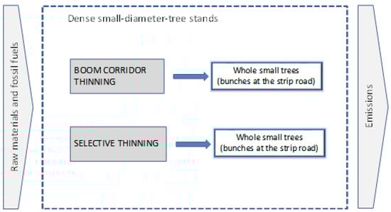 System boundaries for a gate-to-gate analysis of small-diameter tree thinning.