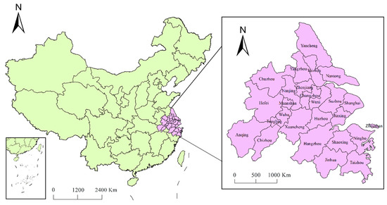 Location of the Yangtze River Delta urban agglomeration (source: authors’ own work).