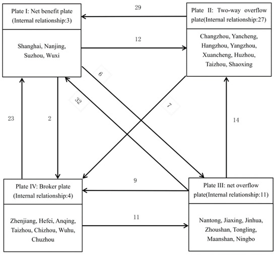 We analyzed the group network characteristics of carbon emission efficiency in the Yangtze River Delta urban agglomeration using a block model. The spatial correlation of each plate was as follows (Table 4).