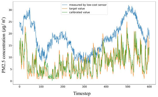 It should be noted that this study was based on a relatively simple task for the LSTM model, because calibrating LCS does not require multistep regression. If a more difficult task is given, and thus the LSTM model becomes more complex, the effect of dynamic weights may appear differently. In addition, it should be noted that the concentrations of particulate matter collected as data were relatively low. The application of our LSTM model to higher concentrations should be further tested in the future. The coefficients for weighting function in this study were optimized for each distribution by calculating the RMSE in a band.