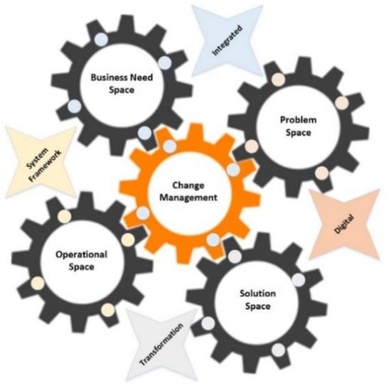 Change management activities must operate at a high level today, since the rate of change is greater than ever []. Change must be viewed as an integrated, dynamic, and continuous process of organizational improvement. It is not a matter of “adding on” or “adding in” new or missing functionality of capability to the current environment.