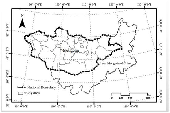 The Mongolian Plateau is located in an arid-to-semi-arid region in Northeast Asia, between 37–53° N and 88–120° E with an area of 274.95 km2. Its main body includes Mongolia and Inner Mongolia (China) (Figure 1). The Mongolian Plateau has a temperate continental climate with prevailing north-westerly winds [15]. The average annual rainfall is approximately 200 mm. Summer seasons are usually very hot, while winter seasons are long and cold. Sudden weather changes, frequent freezing, and intense snow and sandstorms often occur during winter. From north to south, the surface vegetation includes forest, grassland (including meadow, real, and desert steppe types), and Gobi sand cover. The regional ecology is diverse and fragile.
