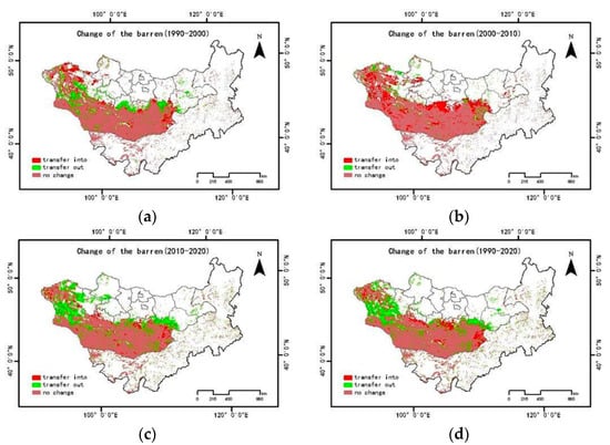 Barren transfer diagrams: (a) 1990–2000; (b) 2000–2010; (c) 2010–2020; (d) 1990–2020.