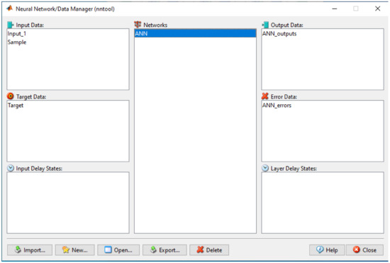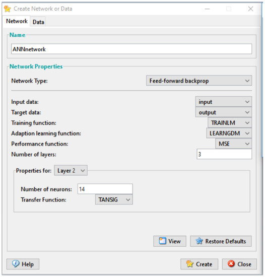 A combined dataset consisting of 17 data points was compiled and operating parameters of transesterification process act as independent input variables. Feed-forward backprop ANN network was selected along TRAINLM as a training function, LEARNGDM adaption learning function, and MSE as a performance function. ANN model entails three input, two hidden, and one output layers with three, three, seven, and one neurons accordingly. These layers entail transfer functions—such as logsig, tansig, and purelin—accordingly. This developed model gives a dependent variable known as biodiesel yield as a result of 17 runs of independent variables. ANN was performed on MATLAB software, 2019 version. Accuracy of models was checked by three different Equations (3)–(5).