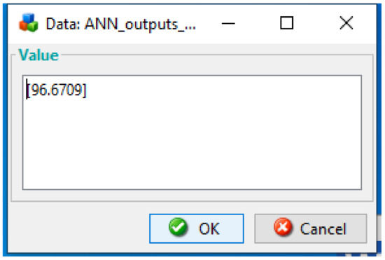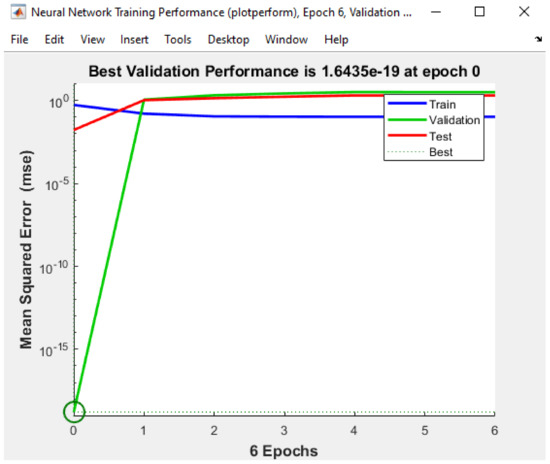 During training, central hidden layer neurons were varied until mean square error was reduced to 1.6435 × 10−19. Then this trained ANN was utilized to measure output (Yield %) on optimum parameter combinations as suggested by RSM (A1B3C2). Screenshots of ANN training and performance have been presented in Figure 7 and Figure 8.