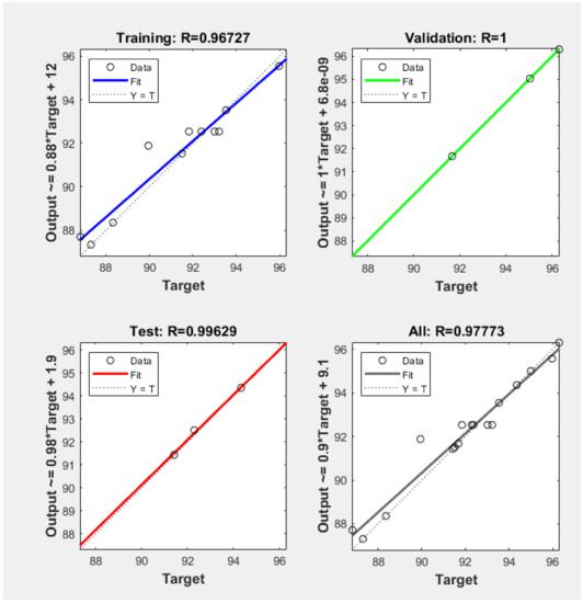 The artificial neural network (ANN) was utilized to validate RSM yield results. Actually, ANN works similar to brain neurons. Their core purpose is to analyze the yields obtained from RSM and to predict the optimum yield. ANN neurons are usually connected with their synaptic weights. Neurons are actually capable of storing the information, after which point they are trained according to assigned function (such as tansig or purelin) and hence optimum response is obtained [42].