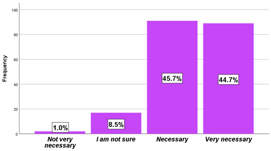 A similar result appears in the answers given on the need to spread awareness of musical cultural heritage (See Figure 6). Disseminating musical heritage is very important for 44.7%, while for 45.7% it is important. The results involve obtaining a mean of 4.34 points out of 5.