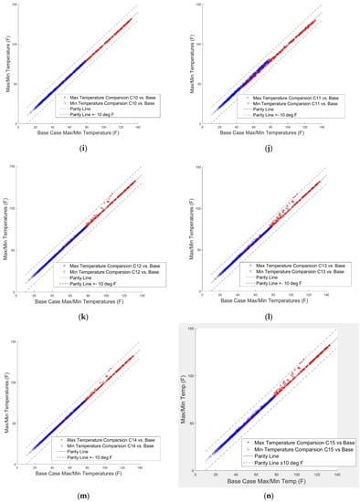 The models were validated by comparing the calculated minimum and maximum test cell air temperatures with measurements and, by trial-and-error, adjusting key parameters that were identified as most uncertain. These included the area of the air infiltration gap, irrigation flow rate, ground-source moisture infiltration rate, Hargreaves Equation scaling factor, the thermal contact resistances (between the soil, first concrete layer, and second concrete layer), the coefficients of free convection (between the cell air and the concrete, as well as the cell air and every other internal surface), the SOF factors for both solar panels, and the transmittance-absorptance for the solar panels. Once validated, measured data were used as inputs to the models in a parametric study to predict performance of the test cell subject to a variety of changes in dimensions, configurations, and other operational parameters.
