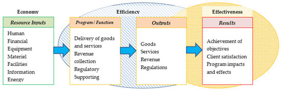 If in the analysis of effectiveness, the problem is to emphasize the goal dimension and neglect the effort dimension, in the case of the economy, the situation is the opposite, with the emphasis only on cost reduction. In this respect, it should be noted that efficiency and effectiveness are also interconnected with the notion of “economy” or “cost-effectiveness” (Figure 3).