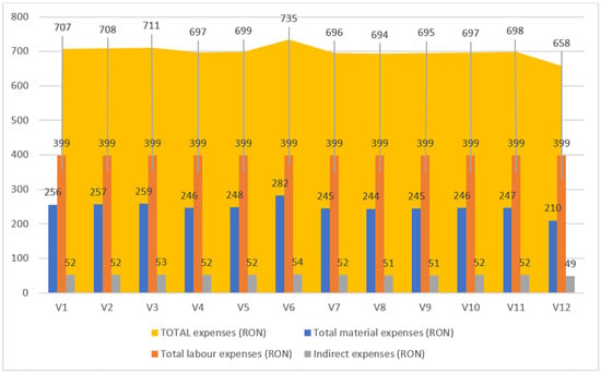Table 5 shows the data related to these categories of economic indicators for all 12 experimental variants, expressed in RON.