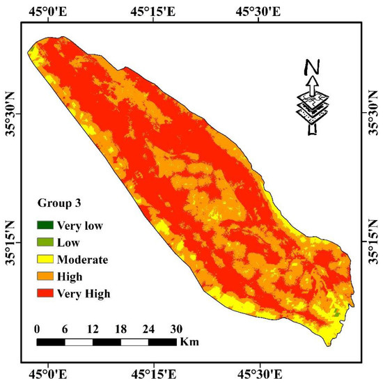 Accordingly, it was observed that in most of the studies, factors, such as slope, slope aspect, and altitude, were used. However, factors such as relative humidity, distance from agricultural lands, and TPI (less than 20% of the reviewed articles) were utilized in fewer studies. Apart from a map, in which all of the mentioned factors were used, we prepared other maps, from which we removed one of the less important factors from the total factors every time. Based on their number of frequencies in the studies, factors of less importance included geology, TWI, relative humidity, distance from farmlands, and TPI. Besides, another map was prepared, from which all six factors were removed. Less important factors were omitted, to stress the importance of the impact of the factors examined on preparing the fire susceptibility map. This is because the careful selection of factors is more important than the methods used for the purpose of zoning [75]. In the end, we will compare the aforementioned maps.