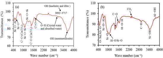 - Aroke, U.O.; Abdulkarim, A.; Ogubunka, R.O. Fourier-transform infrared characterization of kaolin, granite, bentonite and barite. ATBU J. Environ. Technol. 2013, 3, 399–404. [Google Scholar]