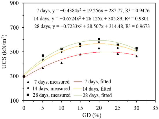 4.3. Influence of GD on Unconfined Compressive Strength