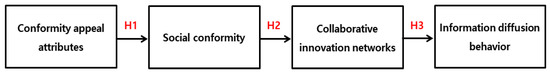 Because beauty-focused one-person media services are used by networking with other users, information diffusion is likely to occur in users with high social conformity through the process of externally sharing and reinventing information. With information spreading rapidly on the Internet, consumers serve as producers of information, actively sharing their experiences, in addition to searching for information [40]. This creates new information communicators participating in information reproduction activities in the diffusion process, which ultimately increases the information value and results in the social contagion of information. Based on the above, we set up Hypotheses 2 and 3 as follows.