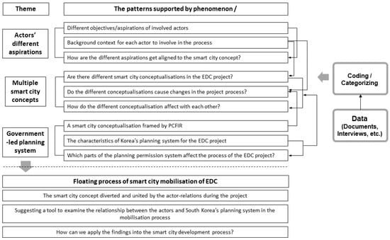 The objective of analysis is an in-depth understanding of the case that is a government-led development project with a clearly defined smart city concept, which becomes multiple and floated during the process. The analysis process is based on the qualitative approach and with the case’s unique setting, the top-down smart city framework and its dissolution, it is an intrinsic type of qualitative case study []. However, in terms of the means of analysing data and presenting the case, it is also in the conventional mode of the ethnographical tradition (Figure 1) [,].