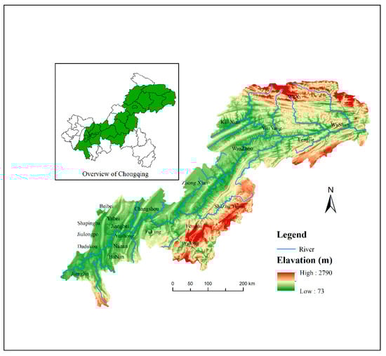 Geographical location of the Chongqing section of the Three Gorges Reservoir area.