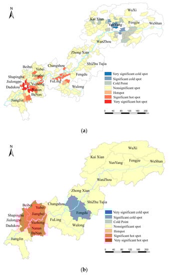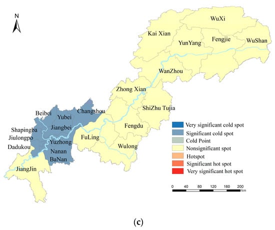 3.3.1. Analysis of Regional Cold–Hot Spot Pattern