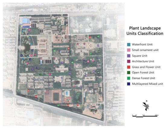 4.3.1. Characteristics of Eight Types of Plant Landscape Units