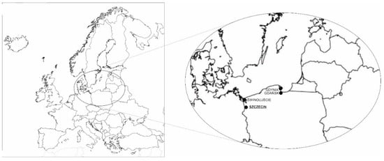 The study covered the seaport in Szczecin, which is one of the four major Polish seaports (in addition to the ports in Gdynia, Gdańsk, and Świnoujście) of primary significance for the national economy. As opposed to the other seaports, the port in Szczecin is located 70 km upstream the Oder River (Figure 2). For many years, this location was considered very advantageous due to offering shorter distances to business facilities located in the hinterland; however, this factor has recently been losing its significance. The changes taking place in the world maritime transport have led to gradual weakening of its competitive position as a result of inferior possibilities of vessel handling in comparison with the other ports. In theory, the port in Szczecin may handle vessels with a draught of up to 9.15 m or with a length of up to 215 m; however, in practice the longest ships may have a draught of below 8.5 m, and those with the maximum draught may be up to 160 m in length. Therefore, the port serves ships with a capacity below 20 k DWT. This is considerably less than in the case of the other Polish ports which handle vessels with a draught of 13 m in Gdynia and 15 m in Gdańsk (including Baltimax ships with a capacity of 150 DWT). In exceptional cases, the harbour master in the Szczecin port may consent to handling larger ships, where such consent depends on the current conditions in the fairway, which significantly reduces the reliability and security of deliveries made within supply chains. Planning any transport that involves vessels with the maximum parameters allowed for the port in Szczecin bears a considerable risk, which is taken by shippers only in exceptional situations.