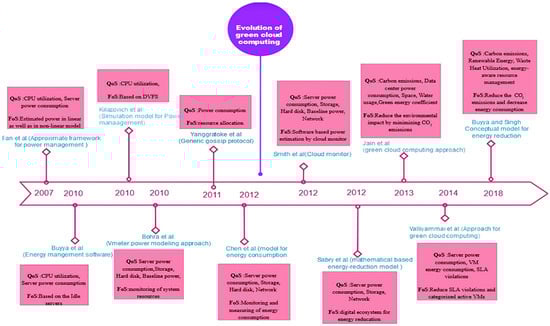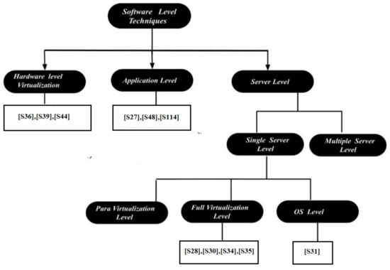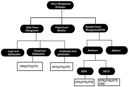 Although earlier surveys [,,] have been innovative, there is still a need for a systematic literature survey to determine, update, and expand research objectives as research in the field of green cloud computing is continuously gaining interest. The first two surveys discussed energy-efficient strategies based on the hardware optimization process. In [], existing energy-efficient technologies were summarized in hardware and software-oriented optimization systems []. However, they primarily focused on software-level-based techniques, and some of the latest innovative technologies, such as bio-inspired thermal-aware technologies were also included.