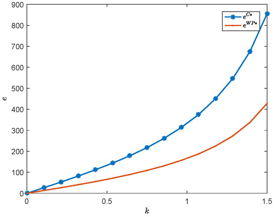 e C * e W P * = ( a c ) k 4 g 2 k 2 > 0 , p C * p W P * = ( a c ) ( g k 2 ) 2 ( 2 g k 2 ) < 0 , π S C C * π S C W P * = ( a c ) 2 g 16 g 8 k 2 > 0 . □
