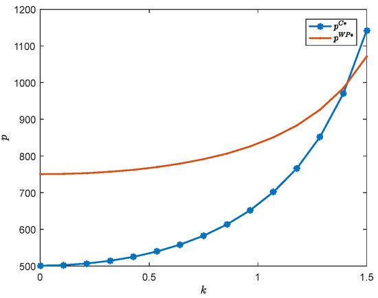 Proposition 1 shows that the total profit and the smart level under centralized decision making are greater than those under the WP contract, but the logistics service price under centralized decision making is lower than that under the WP contract. This shows that there is room for coordination between centralized decision making and the WP contract. By designing corresponding contracts, it is possible to improve the smart level of logistics service and increase the revenue of LSSC members.