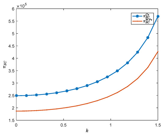 Proposition 4 shows that, under CS-RS hybrid contract, when the parameters meet certain conditions, LSSC achieves perfect coordination; that is, the total profit reaches the level under centralized decision making, and the profits of LSI and LSP are Pareto improved. From Proposition 4, the condition for coordination is that the CS coefficient is equal to the RS coefficient, and LSI and LSP can accept this contract only when this coefficient meets certain conditions. Therefore, LSI can scientifically adjust the contract so that the contract parameters are in a reasonable interval, thus motivating LSP to improve the smart level of logistics service to achieve perfect coordination of LSSC.