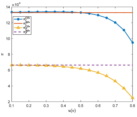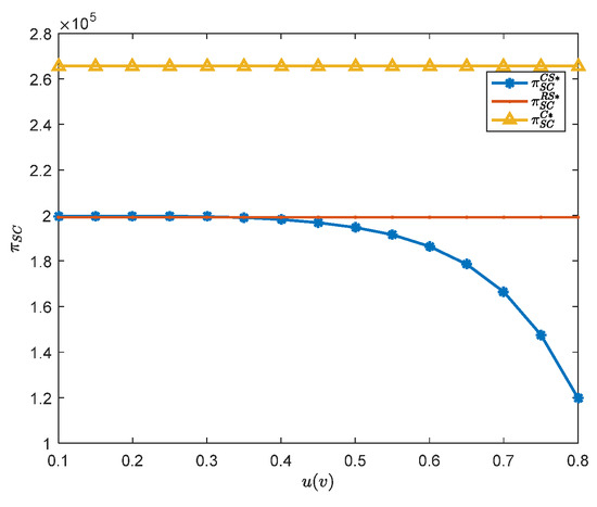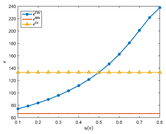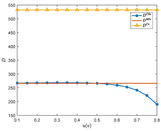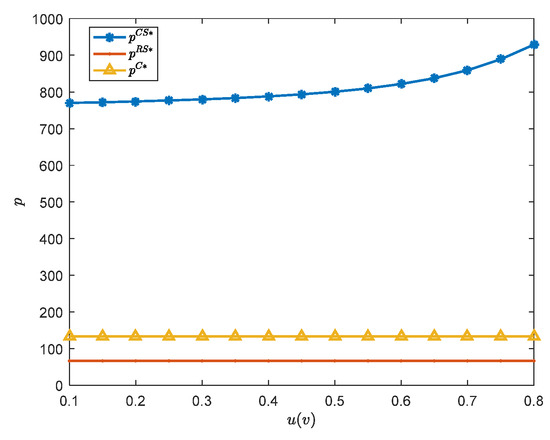 Proposition 2 shows that the CS contract can improve the smart level of logistics service of LSP, but it will increase the logistics service price and cannot increase the revenue of LSP. However, when the CS coefficient is small (i.e., 0 < u < 0.5 ), it can increase the revenue of LSI. This shows that LSI sharing part of the cost of smart transformation can stimulate LSP to innovate logistics services and increase its revenue. Therefore, LSI is willing to share the cost of smart transformation. For LSP, CS reduces the pressure of logistics service innovation, but its profit cannot increase. This means that the CS contract cannot realize the coordination of the supply chain.