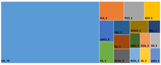 Of the papers reviewed, 90 propose mathematical programming models, most being mixed-integer linear programming (MILP) models. There are, however, a few that propose constraint programming (CP) and dynamic programming (DP) models. The mathematical models are almost always introduced just to formally define the problem. Hence, they are rarely solved, even for small-sized problem instances (see, e.g., []). Regarding the proposed solution approach, 149 of the papers reviewed propose at least one metaheuristic. This is not surprising, as EEJSPs are NP-hard in the strong sense (for further details, see Section 5).