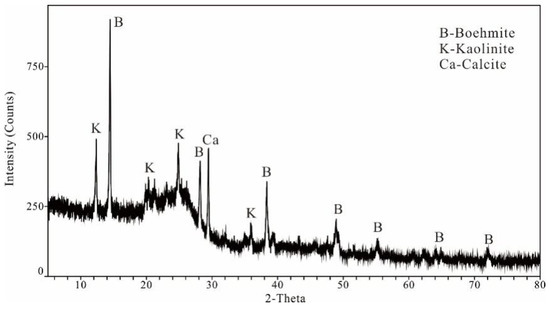 The Ordos Basin is located in the western part of the North China Craton. The basin is an intracontinental depression in the North China Craton from the late Paleozoic, and the coal-bearing strata are developed extensively. The Heidaigou Mine is located in the eastern margin of the Jungar Coalfield. The Late Paleozoic coal-bearing deposits of the basin consist of the Benxi, Taiyuan, and Shanxi Formations (Figure 1) with thicknesses of 19 m, 81 m, and 67 m, respectively (Figure 1b). The Benxi Formation, non-conformably overlying the Middle Ordovician Majiagou limestone [14], is mainly composed of gray bauxite, limestone, and sandstone. The Taiyuan Formation is mainly composed of grayish-white medium-grained quartzose sandstone, limestone, siltstone, coal, and mudstone. No. 6 coal is located at the uppermost Taiyuan Formation, with a thickness of 20 m. The roof of the No. 6 coal mine is mudstone, sandy mudstone, or siltstone, and the floor is mudstone. The Shanxi Formation is composed of gray sandstone, mudstone, siltstone, and five coal seams (Nos. 1, 2, 3, 4, and 5), but these coal seams are not minable [15]. In this study, one coal-seam sample was collected from the No. 6 coal seam in the Heidaigou Mine, following the Chinese Standard Method GB482-2008 [20]. The coal sample was a high volatile (~33.5%) and low–medium ash yield (~17.5%) bituminous coal with a vitrinite reflectance value of 0.58% [14]. The minerals in the coal were mainly kaolinite, boehmite, and minor calcite (Figure 2).