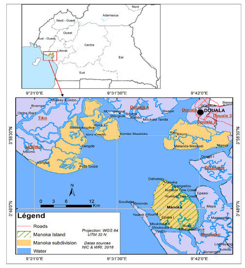 Tatuebu Tagne C, Sonwa DJ, Awono A, Mama MN, Fongnzossie E, Ngala Mbiybe R, Essamba à Rim LF, Ntja RD. Land Cover and Land Use Changes between 1986 and 2018, and Preliminary Carbon Footprint Implications for Manoka Island (Littoral Region of Cameroon). Sustainability. 2022; 14(10):6301. https://doi.org/10.3390/su14106301