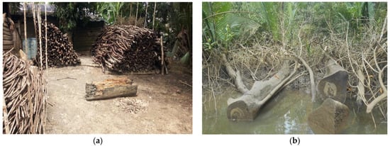 - Dahdouh–Guebas, F.; Mathenge, J.; Kairo, J.; Koedem, N. Utilization of mangrove wood products around Mida Creek (Kenya) amongst subsistence and commercial users. Econ. Bot. 2000, 54, 513–527. [Google Scholar] [CrossRef]