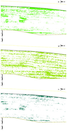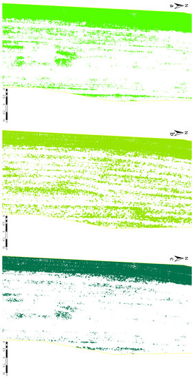 ® Mappersoftware (Pix4D S.A., Prilly, Switzerland) was used, providing four different orthophotos at a very high image resolution (2 mm) for further analysis, as can be seen in