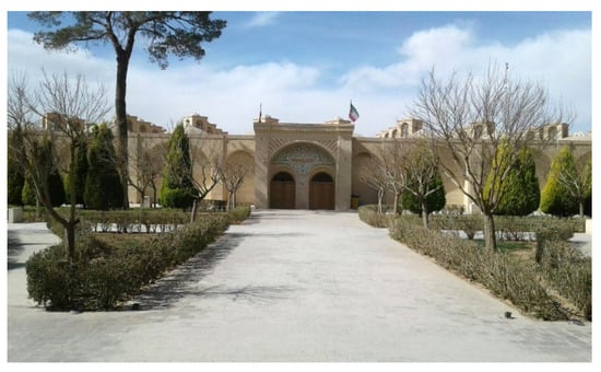 Yazd, a desert city in central Iran, has played a significant role in the history of Persian civilization as a sanctuary for multiple religious ideologies [,]. The city has been receptive to different followers of Judaism, Zoroastrianism, and Islam in the passage of time []. The history of Yazd dates back to the pre-Islamic era (3000 BCE) [,]. Its earthen architecture and urban texture have developed in a unique way in the passage of time as each era of history has integrated the previous culture into its current architecture, which has made Yazd an example of a homogenous architecture and urban planning [].