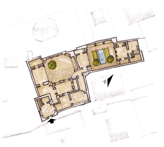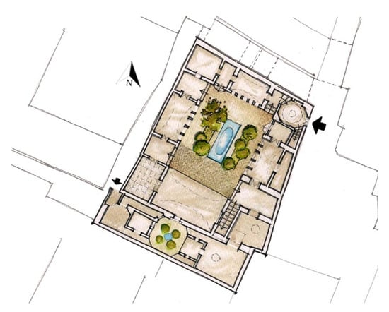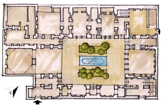 The ground floor of the Shaarbaf House, Yazd, Iran. Source: Reproduced and presented with watercolor by the first author [,].